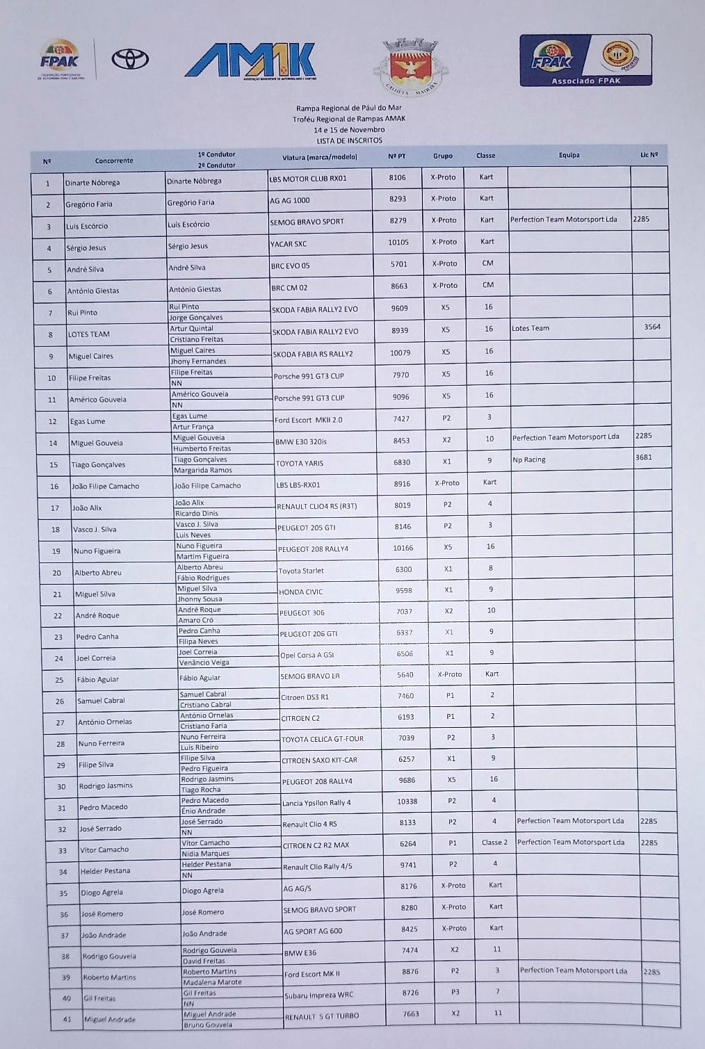 Algumas inscrições estavam pendentes, equipas que estavam a competir no Porto Santo, como conseguiram concluir a prova sem danos nos carros, acabaram por confirmar a presença na última rampa da temporada de 2025.