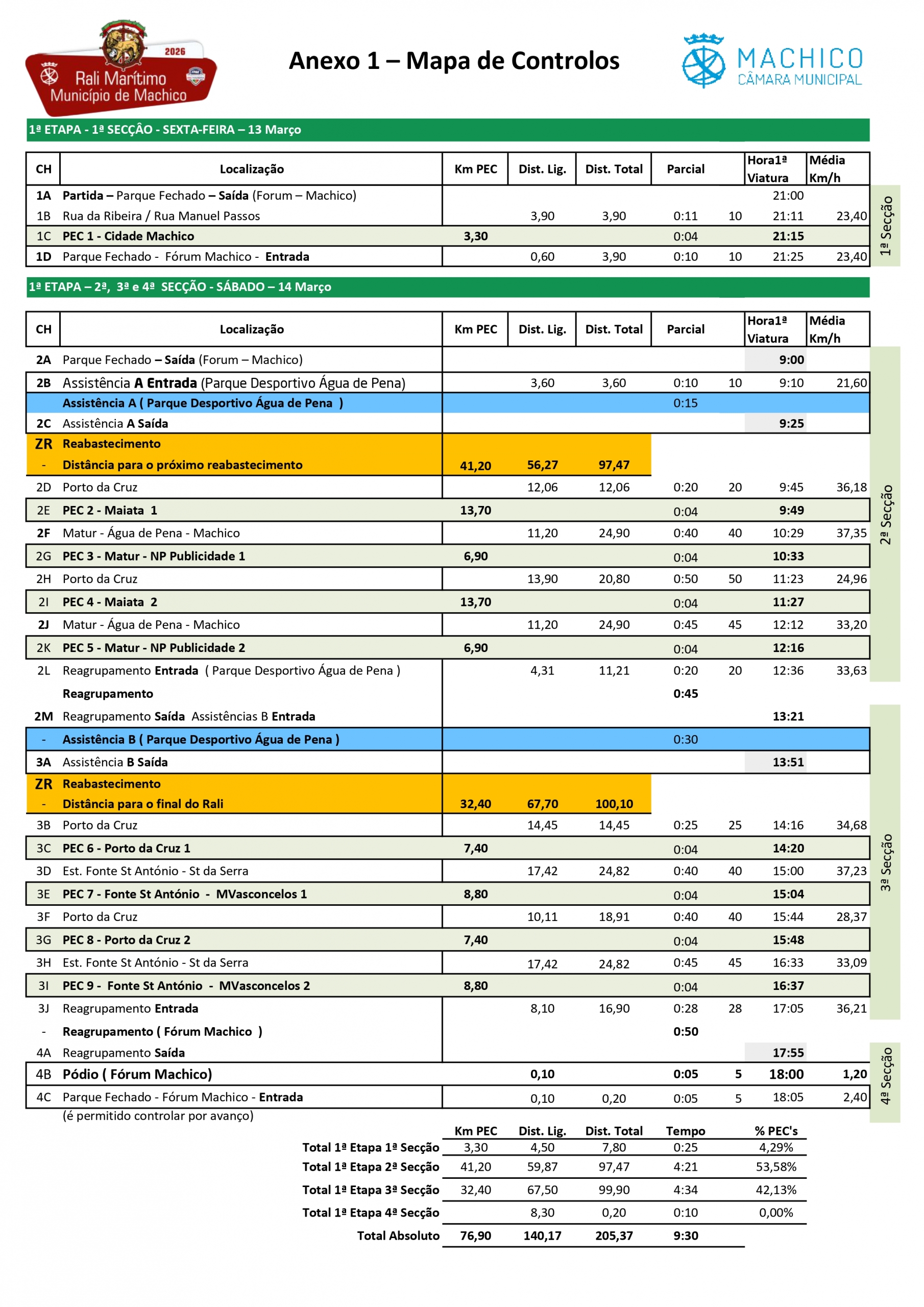 O Rali, que vai para a estrada anos dias 13 e 14 de março, é composto por 9 classificativas. O horário designado para as provas especiais de classificação por ser consultado aqui.