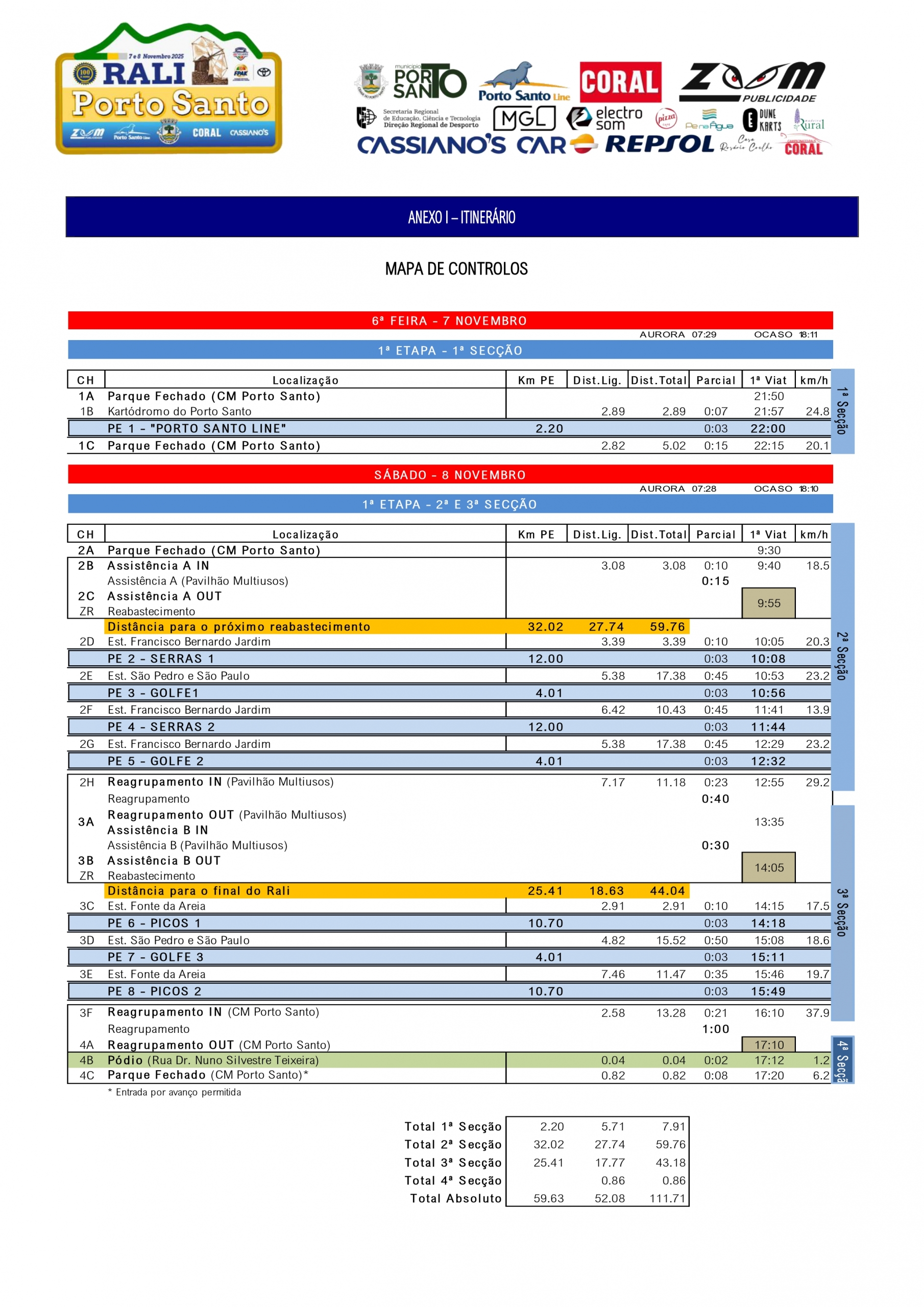Tal como a RTP noticiou, o Rali do Porto Santo terá este ano 8 especiais de classificação, com a novidade da classificativa maior, a de 12 km, ser feita por 4 vezes, duas em cada sentido. Rali que também três passagens pela especial de classificação do Campo de Golfe com 4.01km.