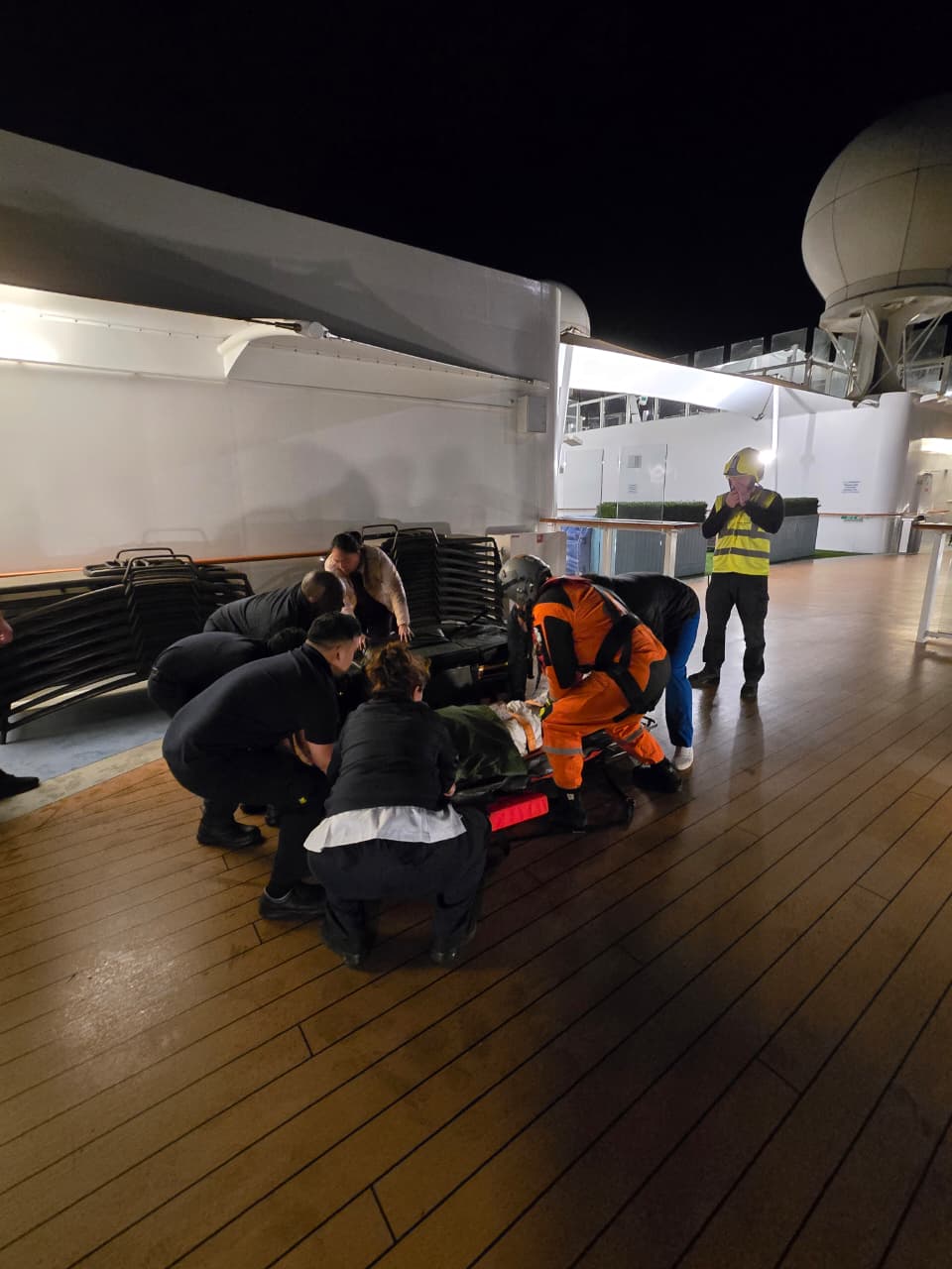 O alerta foi dado às 21h45 de terça-feira, 18 de fevereiro, pelo comandante do navio, informando que uma passageira britânica, de 86 anos, apresentava fortes dores nas costas, que evoluíram para paraplegia dos membros inferiores.